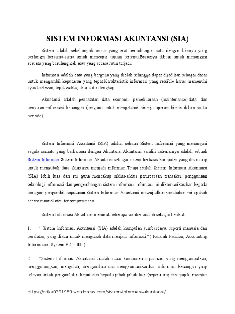 Sistem informasi akuntansi (sia) adalah sebuah sistem yang mengumpulkan, menyimpan dan mengolah data keuangan dan akuntansi yang digunakan oleh pengambil keputusan.